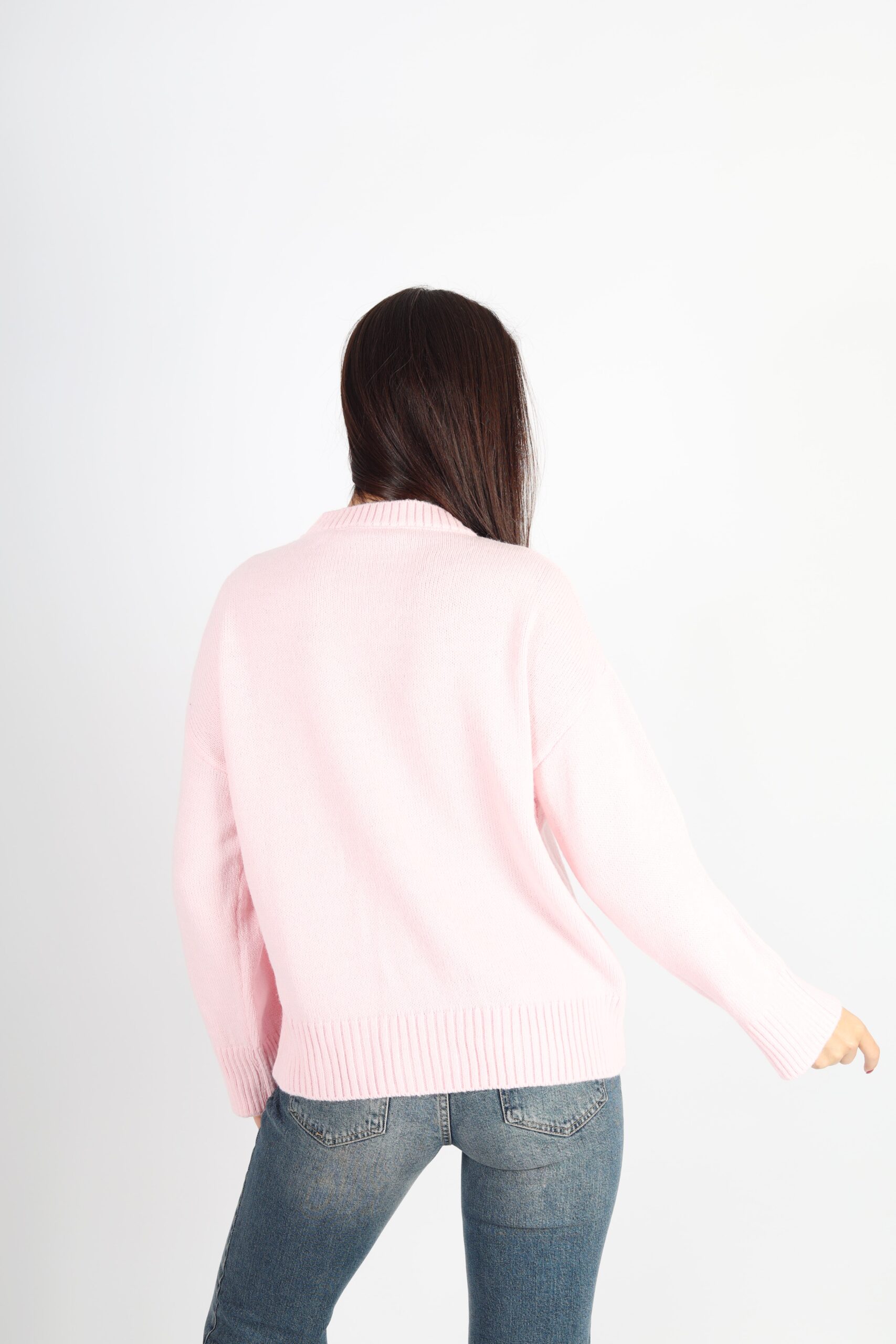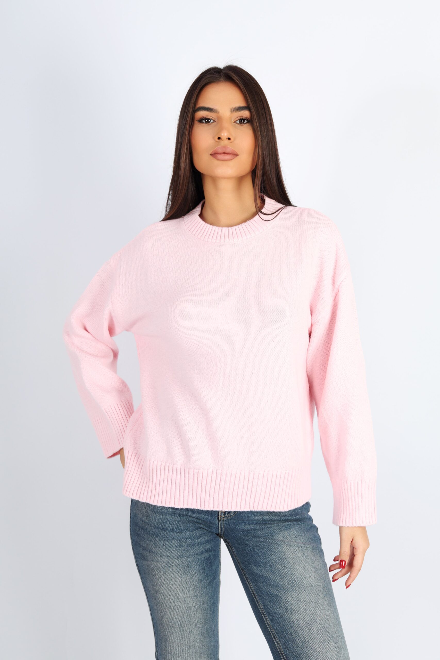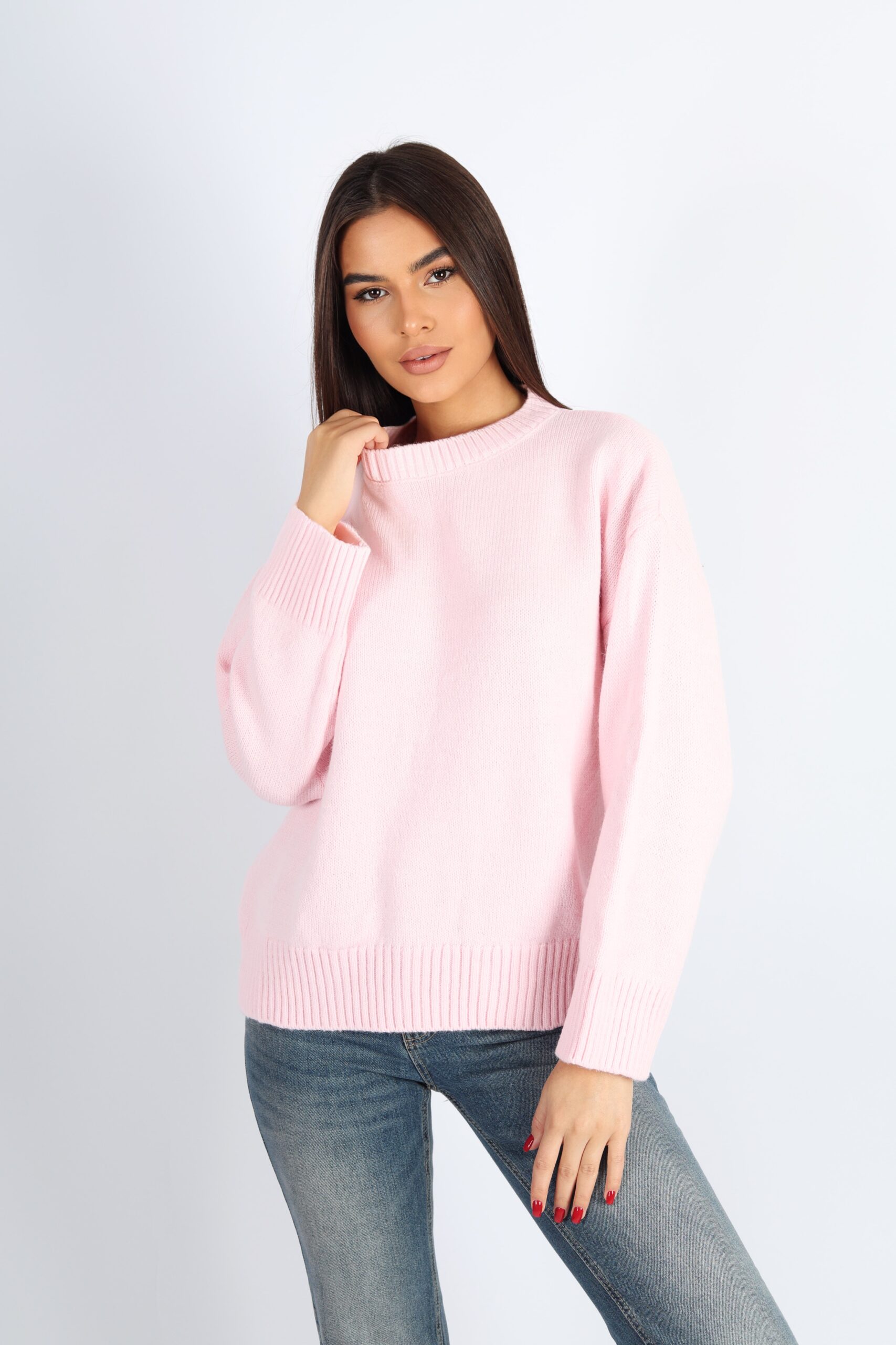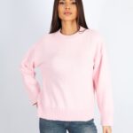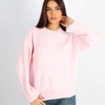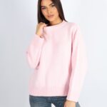 Kadın Bisiklet Yaka Oversize Triko Kazak – Pembe
