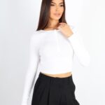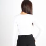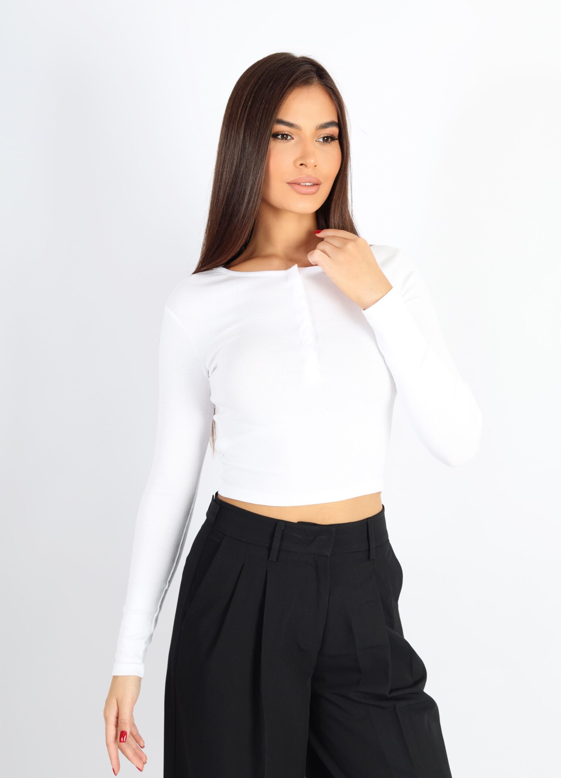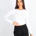 Kadın Çıtçıt Düğmeli Uzun Kollu Top – Beyaz